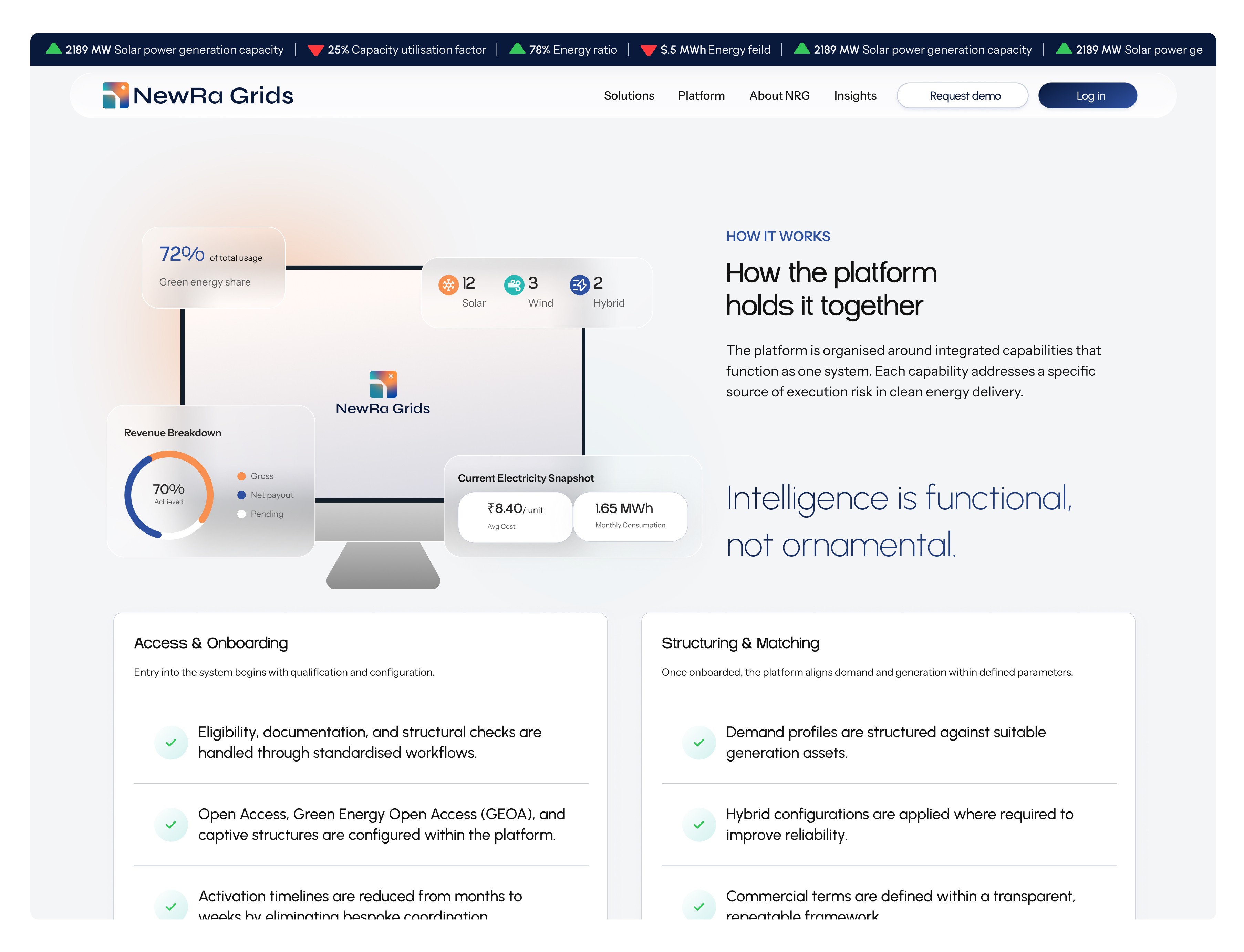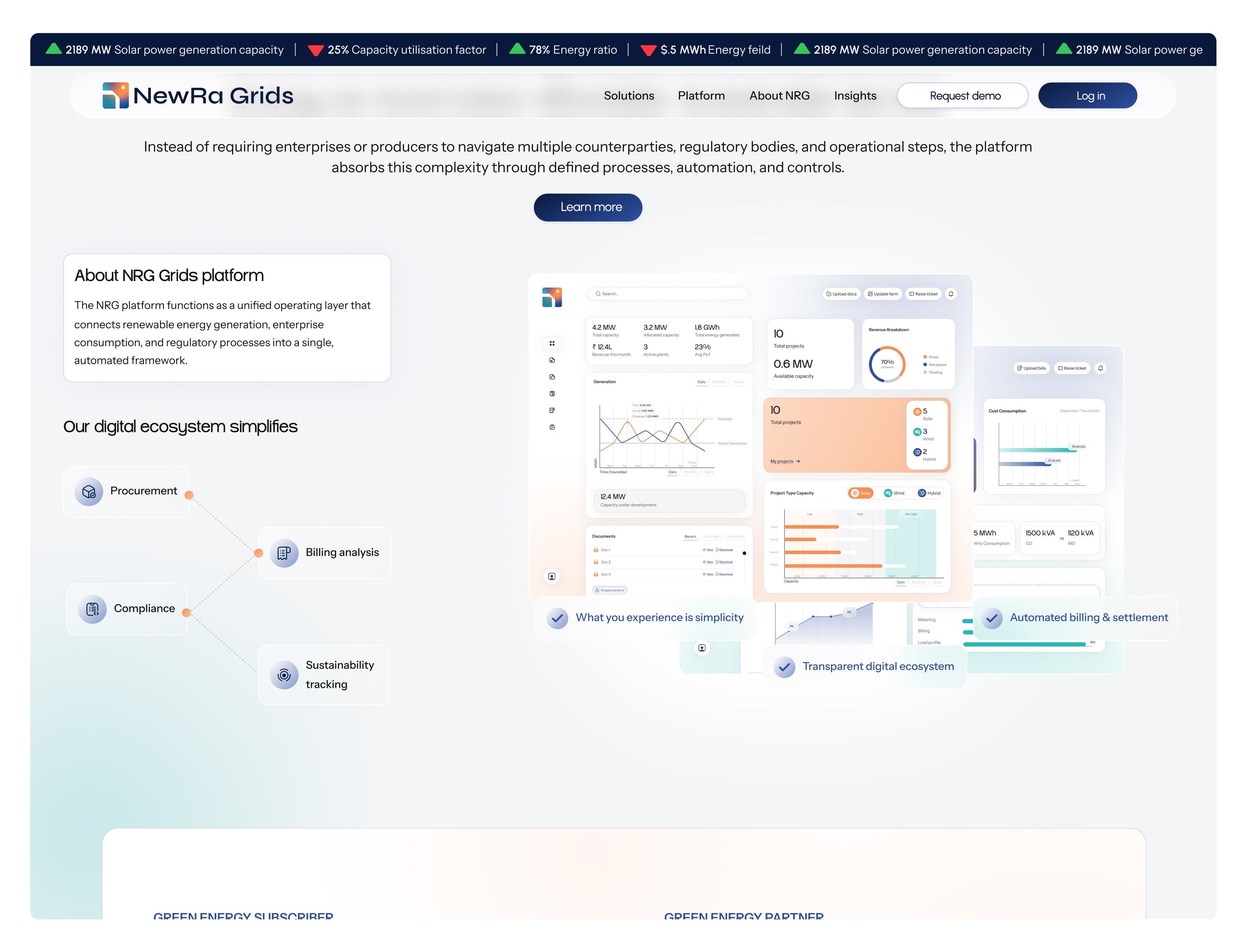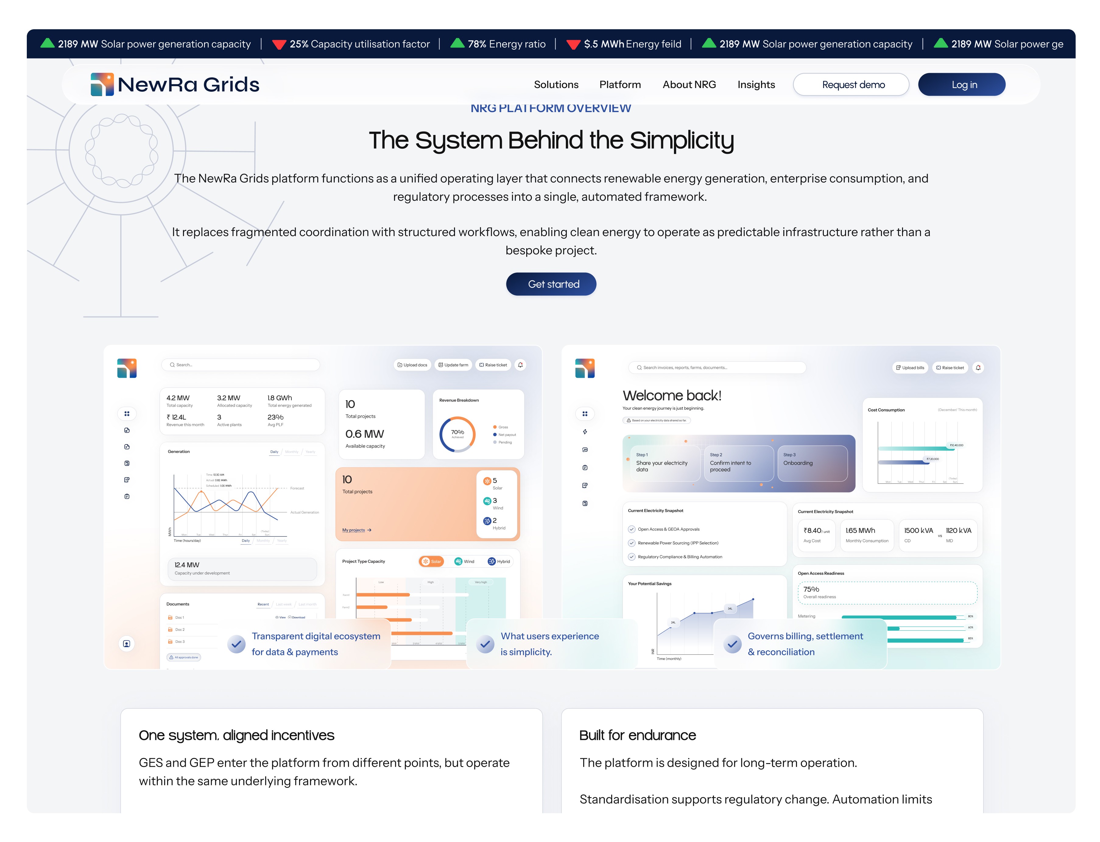 NewRa Grids is a renewable energy execution and coordination platform that enables structured participation between electricity generators and consumers which governs allocation, delivery, settlement, and accounting.