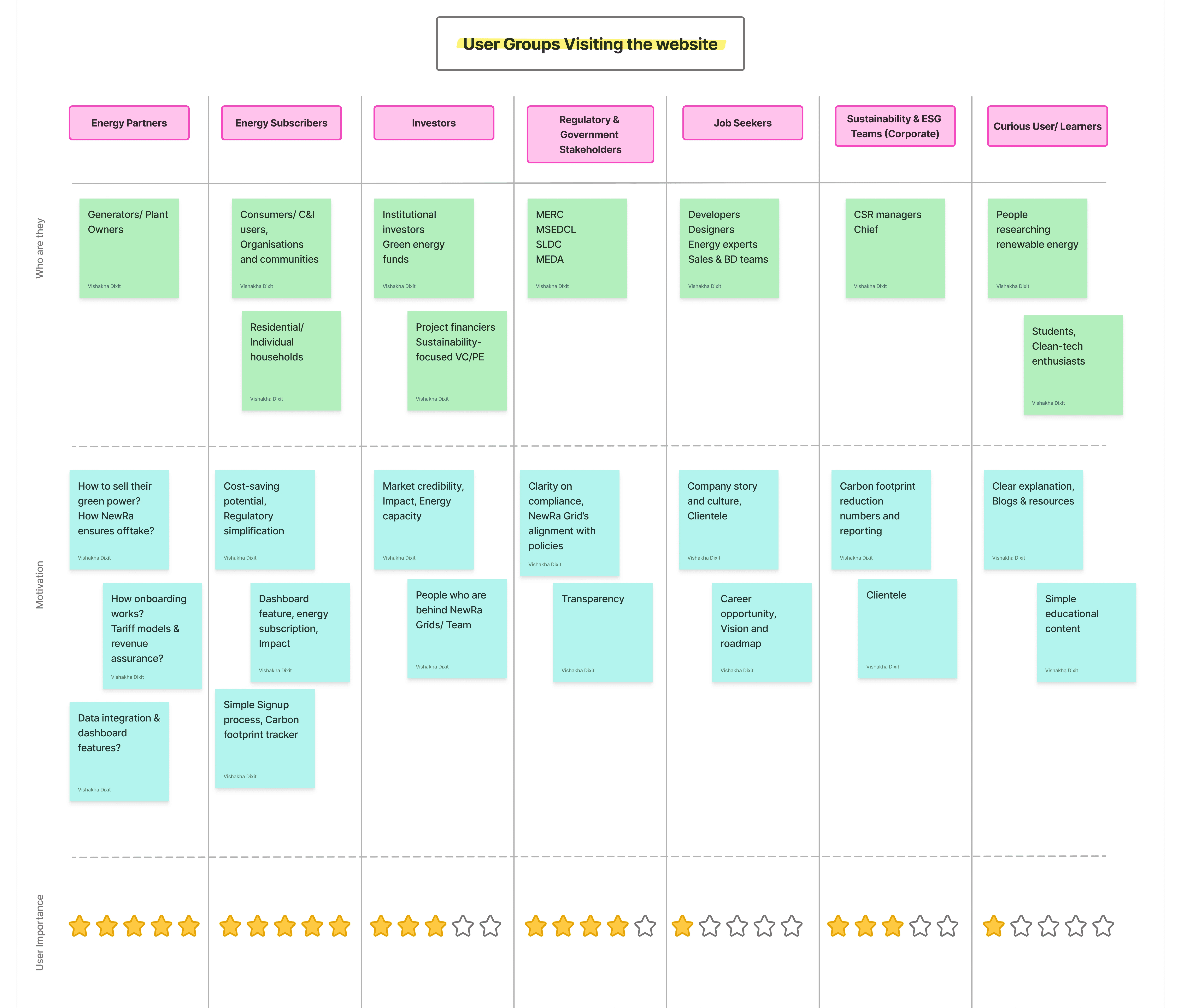The user segment for this site were mainly going to be renewable energy generators, consumers, investors, government bodies, explorers who are interested to know about the industry.